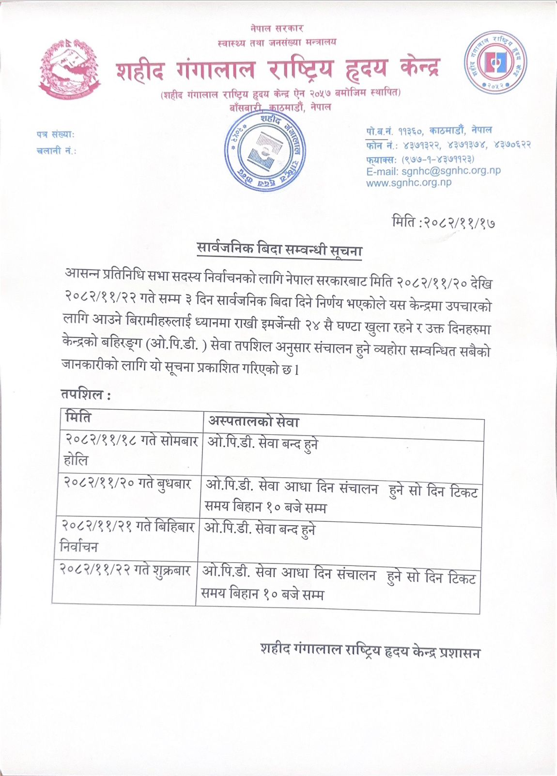 Shahid Gangalal National Heart Centre is providing specialist care in the field of cardiology and cardiac surgery. SGNHC is a full fledged hospital which deals with a wide spectrum of cardiac cases. The centre has established as National referral centre of cardiology and cardiac surgery. Best cardiac services with latest technologies are available here. We are paying attention to both the curative and preventive aspect of cardiology & cardiac surgery. The number of patients visiting to this centre is rapidly increasing. So, recently we have started the facility of paying clinic. This centre is rapidly building up reputation as a hospital dedicated to heart patient.