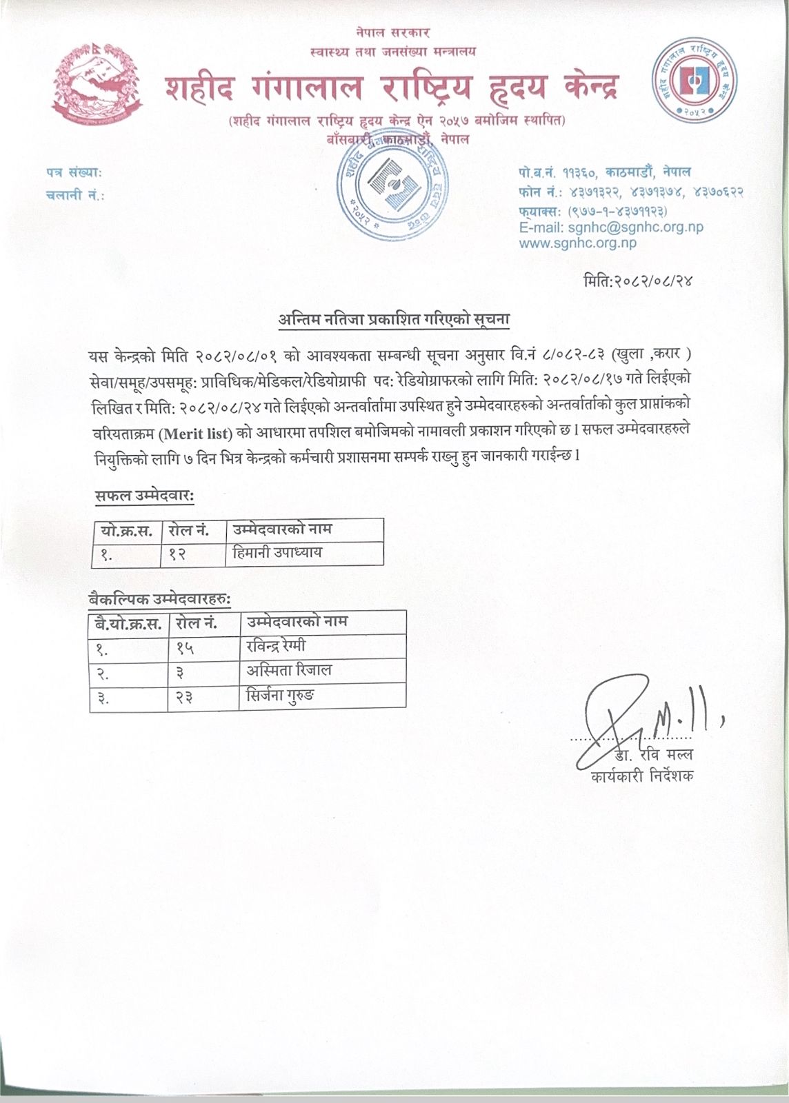| रेजिष्ट्रार (पेडियाट्रिक कार्डियोलोजी)को नतिजा प्रकाशित गरिएको सूचना : | 2024-09-26 | View |