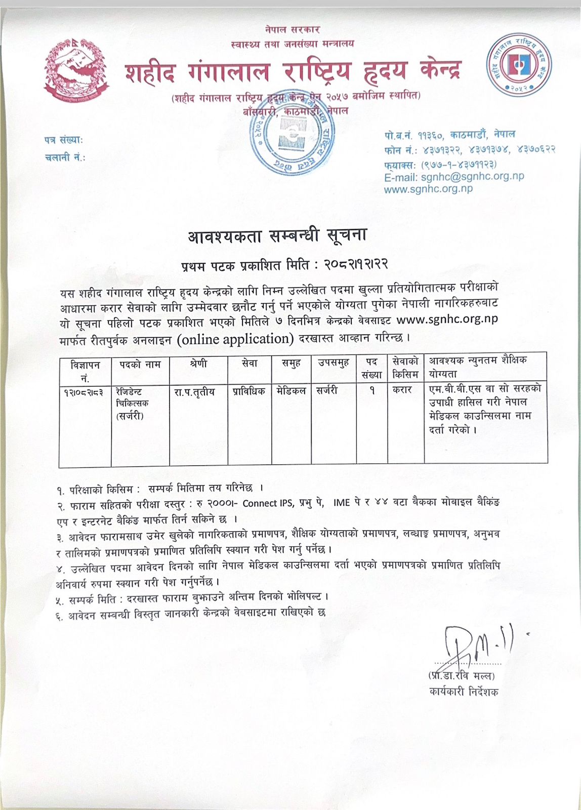 | रजिष्ट्रार कार्डियो भास्कुलर सर्जरीको आवश्यकता सम्बन्धी सूचना। | 2025-05-14 | View |