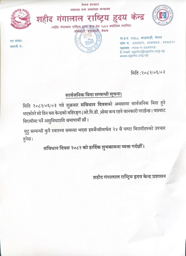 Shahid Gangalal National Heart Centre is providing specialist care in the field of cardiology and cardiac surgery. SGNHC is a full fledged hospital which deals with a wide spectrum of cardiac cases. The centre has established as National referral centre of cardiology and cardiac surgery. Best cardiac services with latest technologies are available here. We are paying attention to both the curative and preventive aspect of cardiology & cardiac surgery. The number of patients visiting to this centre is rapidly increasing. So, recently we have started the facility of paying clinic. This centre is rapidly building up reputation as a hospital dedicated to heart patient.