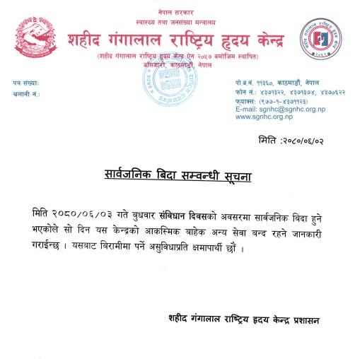 | सार्वजनिक बिदा सम्वन्धी सूचना | 2025-09-26 | View |