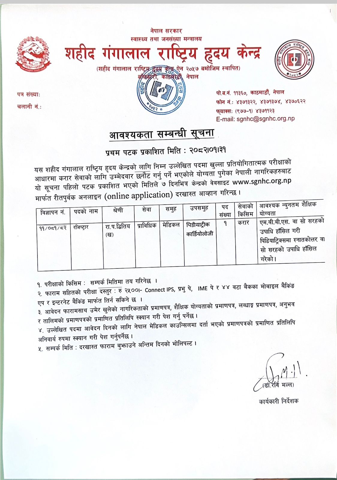 | रजिष्ट्रार पिडीयाट्रीक कार्डियोलोजीको आवश्यकता सम्बन्धी सूचना। | 2025-05-14 | View |